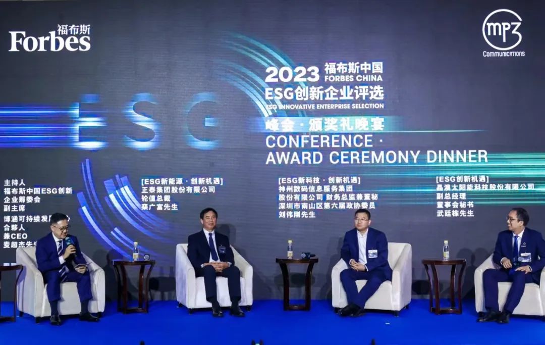 在本次峰会的ESG 创新机遇专题论坛上,神州信息财务总监兼董秘刘伟刚与福布斯中国ESG创新企业筹委会副主席麦超杰、正泰集团股份有限公司轮值总裁栾广富、晶澳太阳能科技股份有限公司副总经理武延栋等嘉宾一起对可持续发展与数字化及企业技术创新之间的关系进行深入探讨。